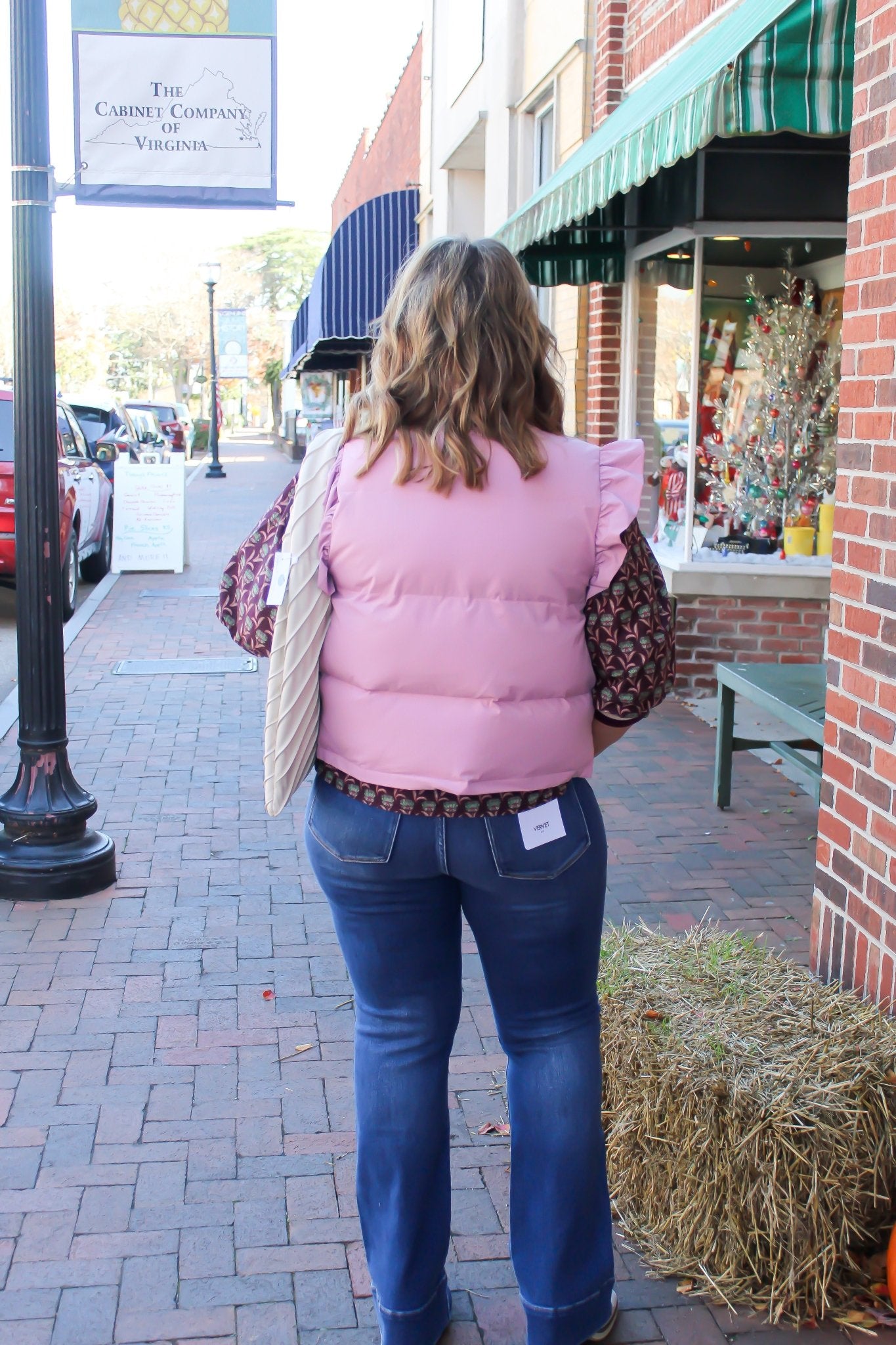 Stay cozy and cute in The Bow & Ruffle Puffer Vest, featuring playful ruffle sleeves and a charming front bow detail. Perfect for layering on chilly days, this vest adds a fun, feminine flair to your look while keeping you warm and snug. Step out in style with a piece that’s as lively as your spirit!
