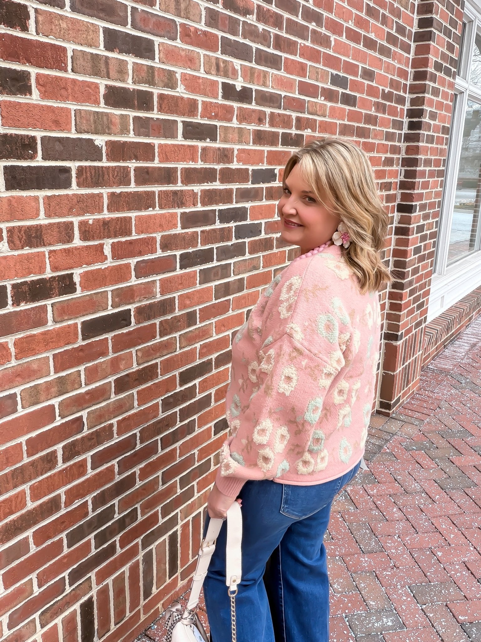 Wrap yourself in cozy charm with the Textured in Petals Sweater. This oversized knit features a delightful floral print that adds a touch of whimsy to your everyday look. The textured petals create an eye-catching design that’s both comfy and stylish, perfect for brightening up cool days with playful flair.