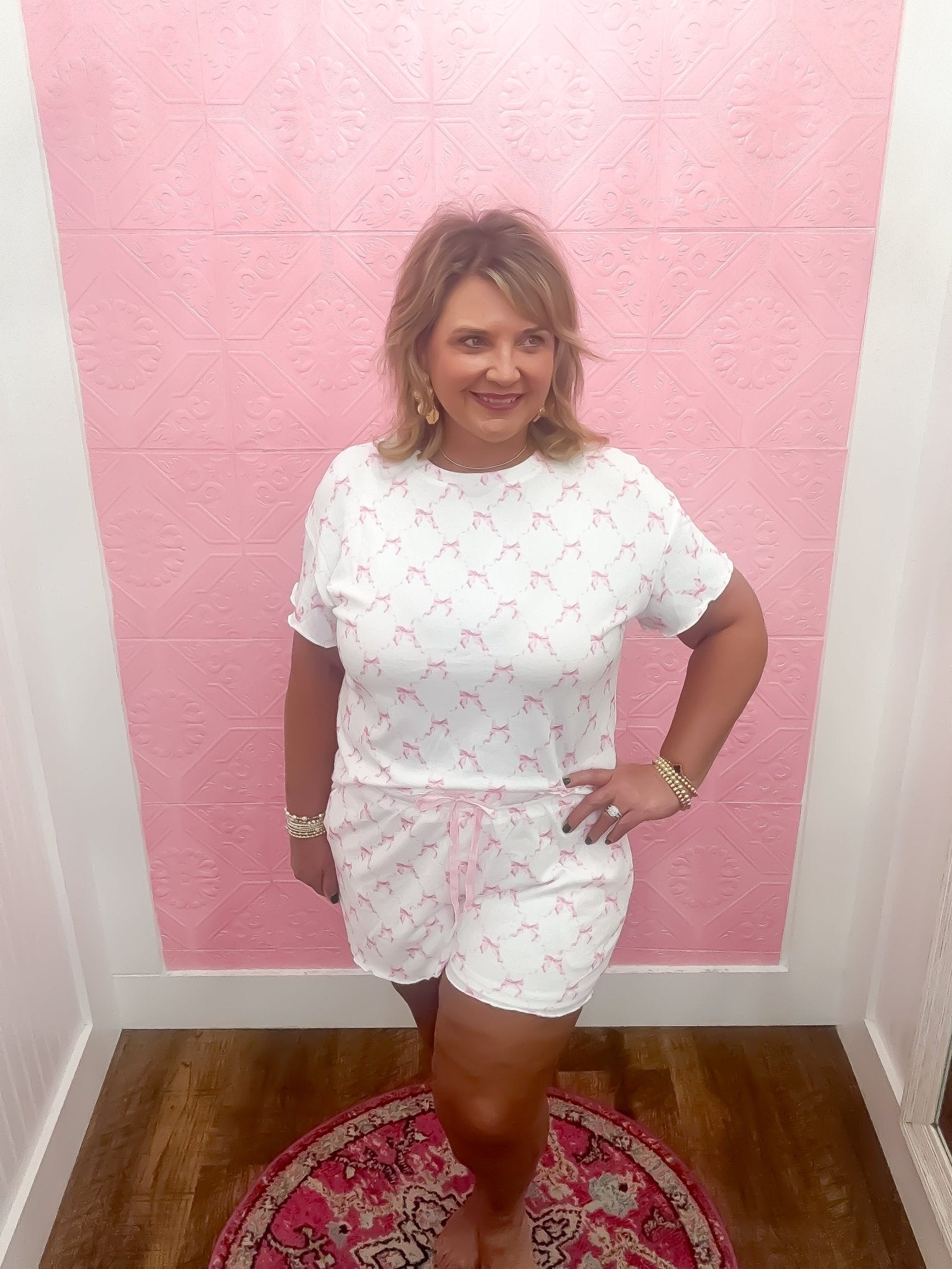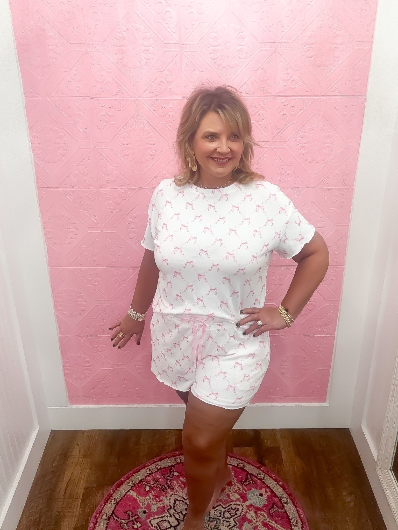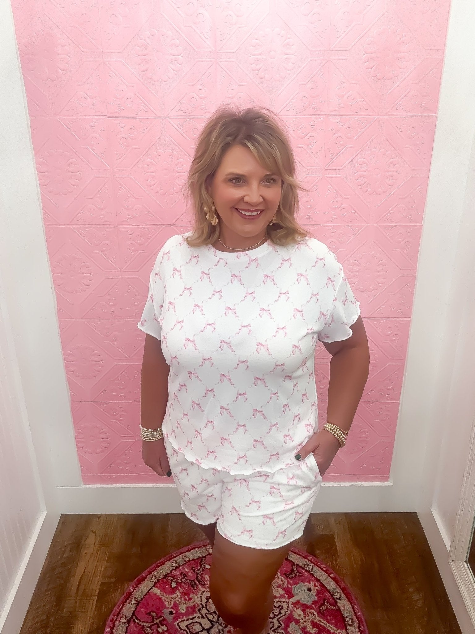 Slip into cozy comfort with the Tied in Comfort Pajama Set. Featuring a playful bow pattern and made from super soft fabric, this shorts set promises relaxing nights and easy lounging. Perfect for those who love cute and comfy sleepwear that feels as good as it looks.