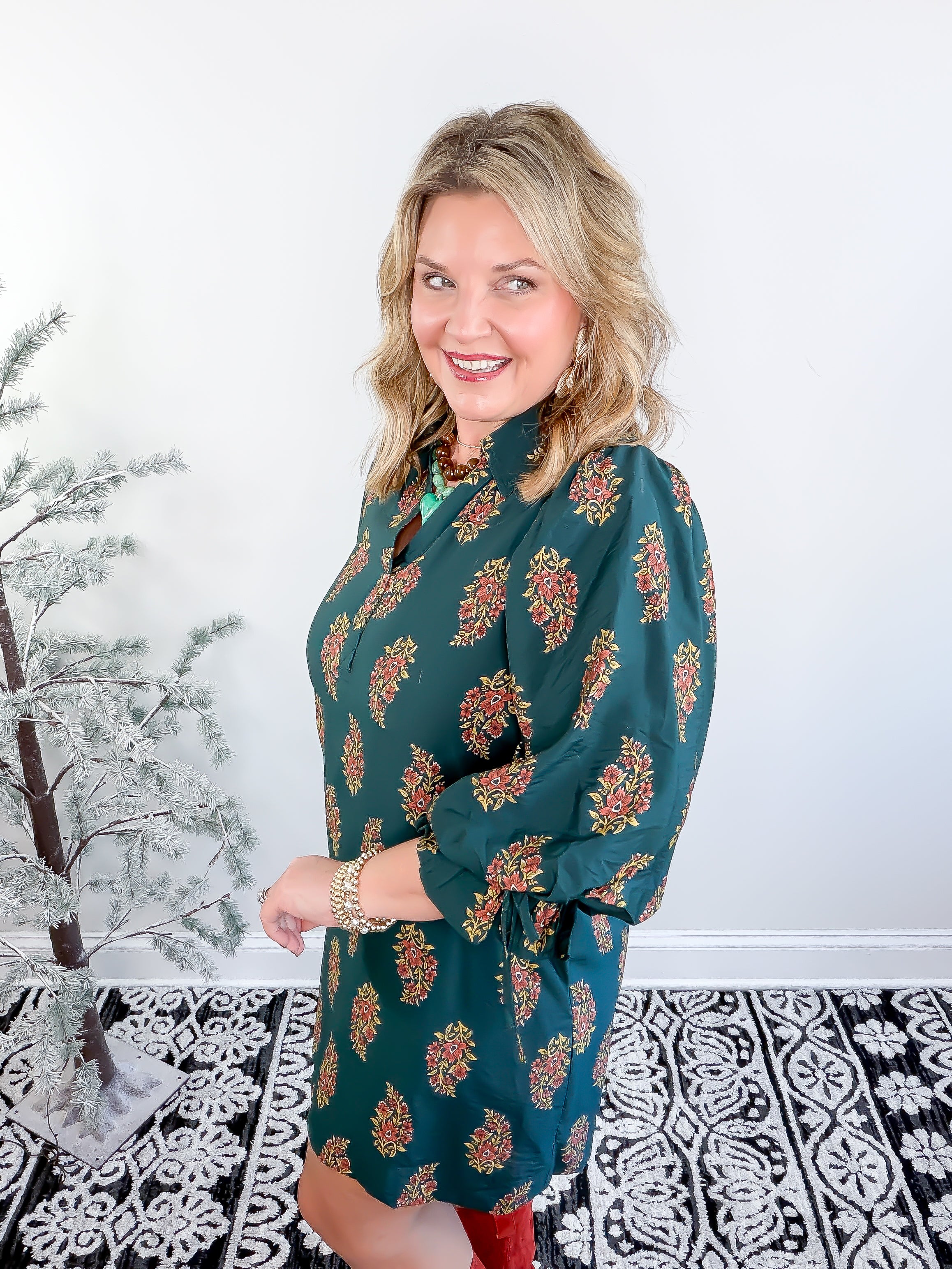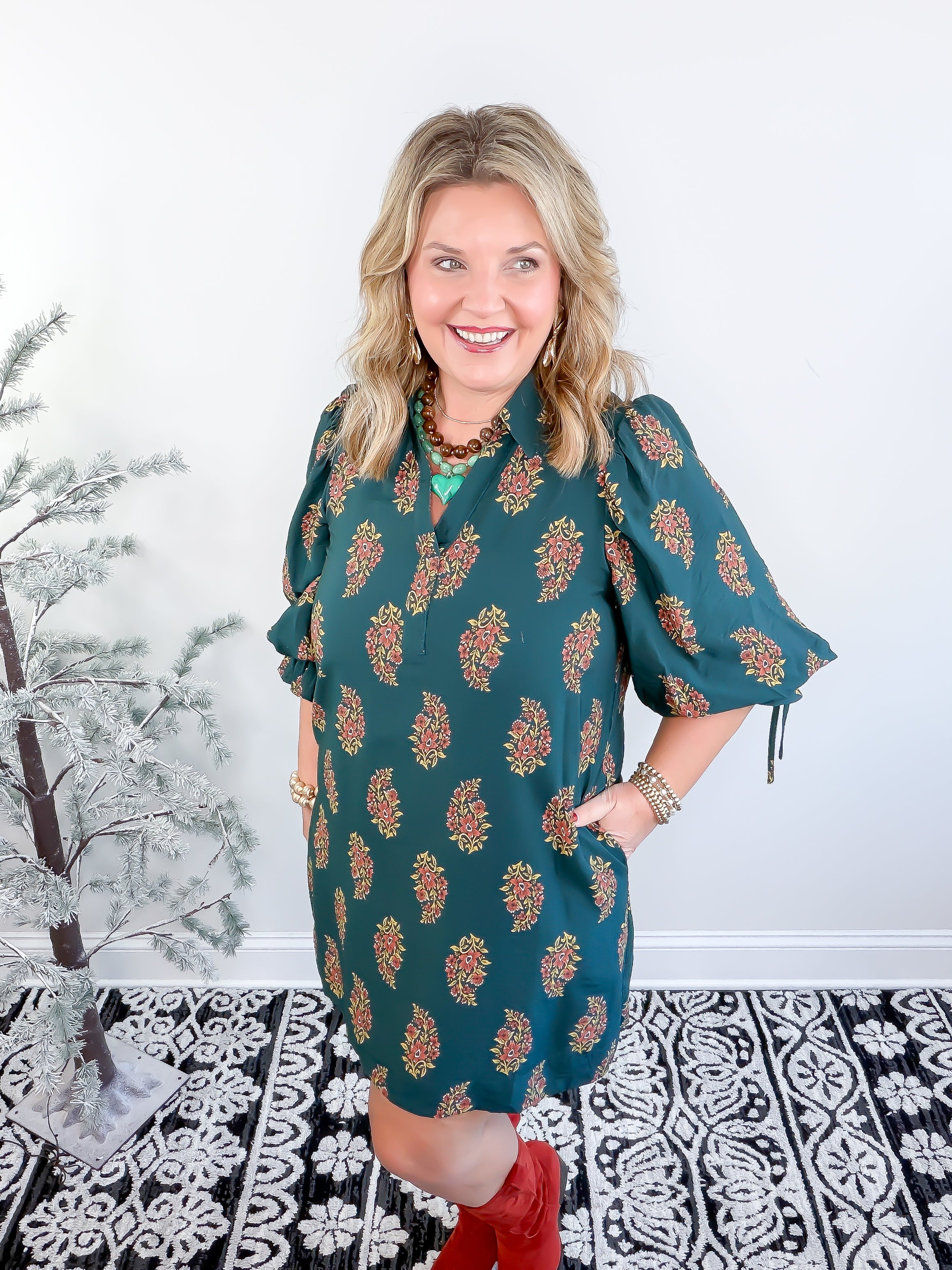 Step into sunny days with the Green With Grace Mini Dress, a playful floral print favorite. Lightweight and fully lined, it promises comfort without being sheer. Puff sleeves gather at drawstring-tied cuffs for a flirty touch, while the back waist tie adds a fun, adjustable fit. Handy side pockets keep your essentials close, making this woven mini dress perfect for twirling through your day with ease and charm.