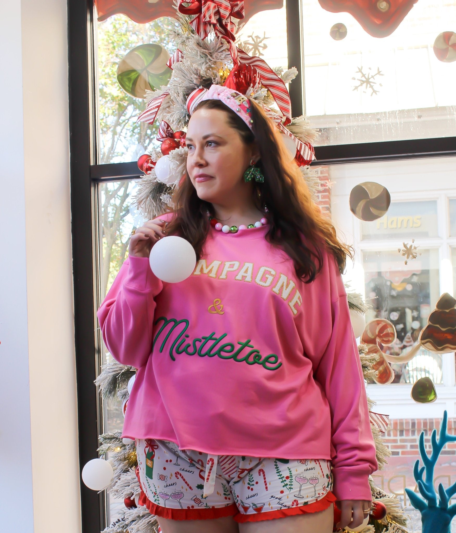 Spread some cheer from the bottom up with our Celebration Boxer Shorts! Featuring a festive print of champagne bottles, candy canes, and holly sprigs, these lightweight shorts are trimmed with playful red lace and a candy stripe waistband. The 1.5" inseam and relaxed fit keep things breezy and comfy for lounging, gift wrapping, or dancing to your holiday playlist!