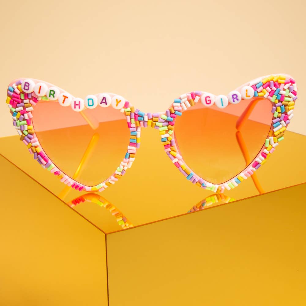 Celebrate your big day in sweet style with these whimsical "Birthday Girl" sprinkle beaded heart glasses. These candy-colored frames are the ultimate lightweight accessory for birthday queens looking to stand out in every photo op.