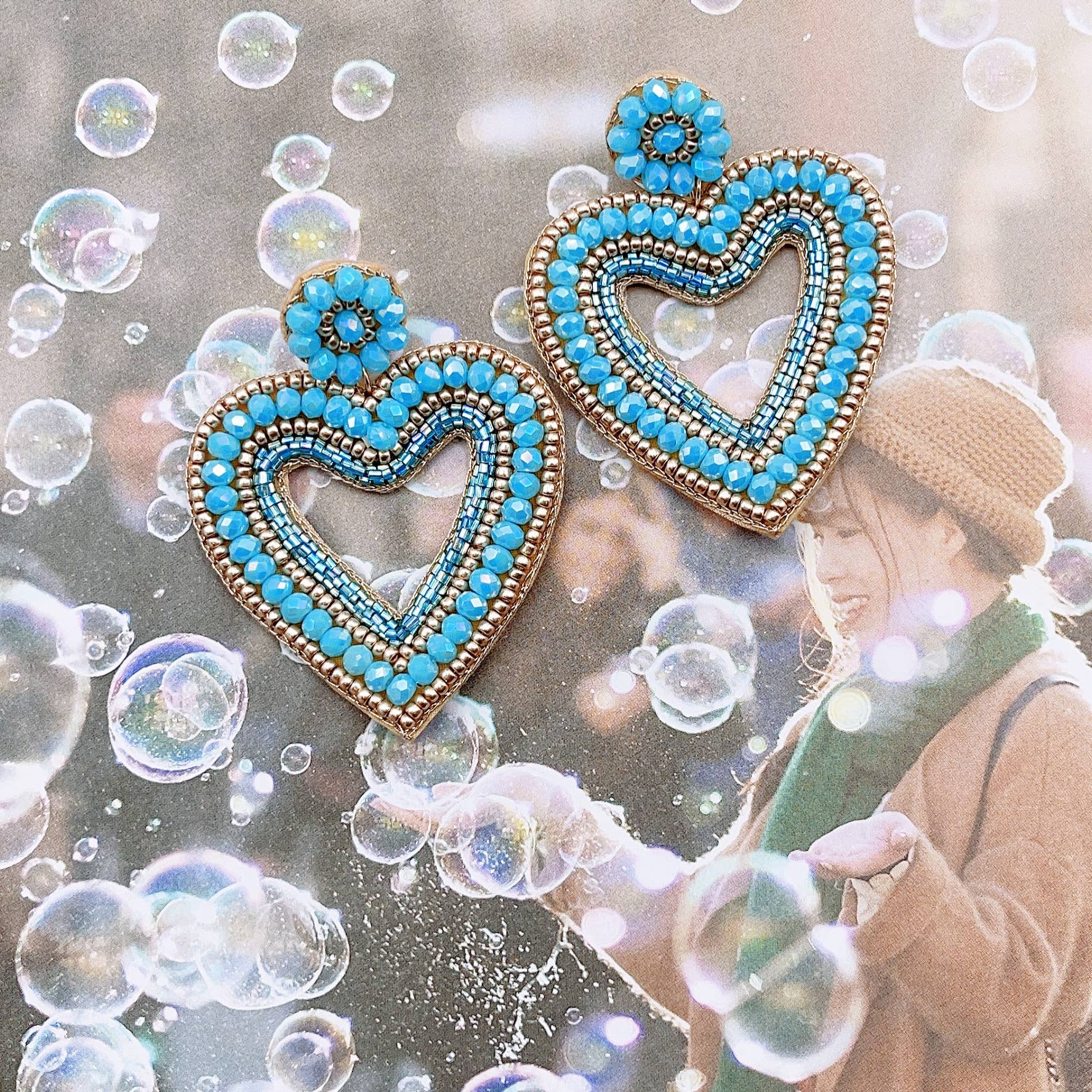 Experience the artistry of Colombia with these stunning, handcrafted blue heart statement earrings. Featuring intricate seed beading and luxe 24-kt gold triple-plated accents, these unique studs blend rich heritage with modern elegance. Elevate any outfit with a show-stopping piece that tells a story of tradition.