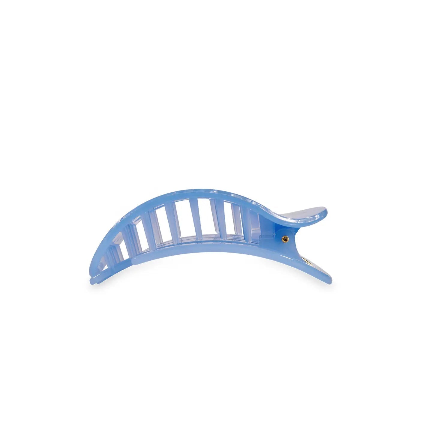 Lay flat and relax with the new TELETIES Spring Splash Flat Round Hair Clips in Blue. This hair clip is designed to allow you to lay back flat, do yoga, or sit comfortably in a seat with a headrest, and it is made with the same material that is nearly unbreakable.