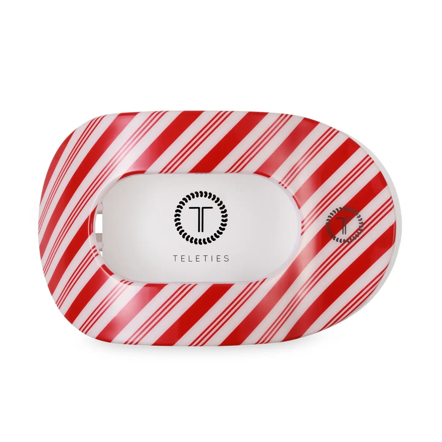 Lay flat and relax with the new TELETIES Candy Cane Crush Large Flat Round Hair Clip in Red and White Stripes. This hair clip is designed to allow you to lay back flat, do yoga, or sit comfortably in a seat with a headrest, and it is made with the same material that is nearly unbreakable.