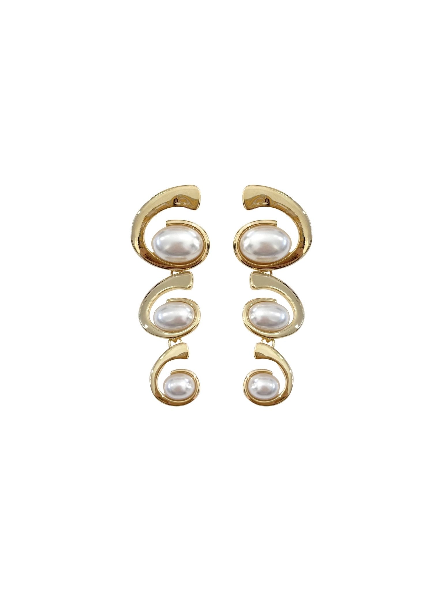 Transform your jewelry collection with the Eliana Swirl Pearl Earrings. These breathtaking drop earrings feature a unique, sculptural swirl design meticulously crafted to frame the face with artistic flair. Nestled within the fluid waves are luminous pearl accents that provide a timeless touch of luxury. Perfect for the modern woman seeking a bold statement piece, these earrings offer the perfect balance of contemporary art and classic elegance.