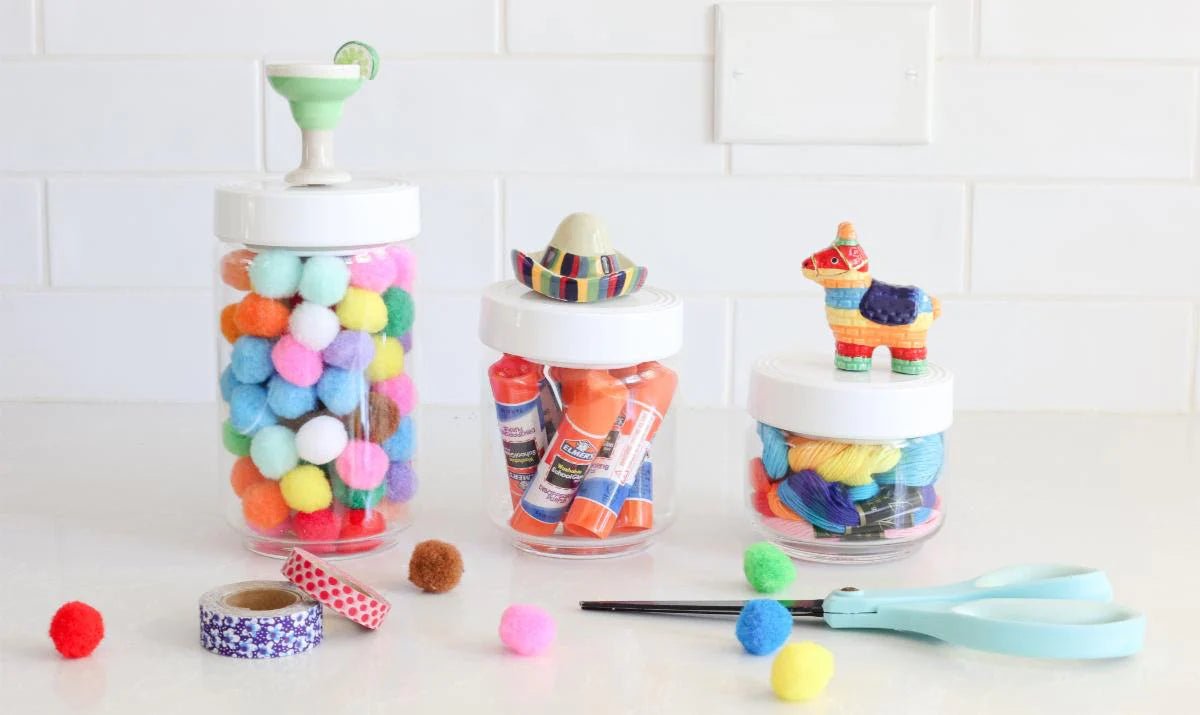 - Each jar is topped with a melamine top!