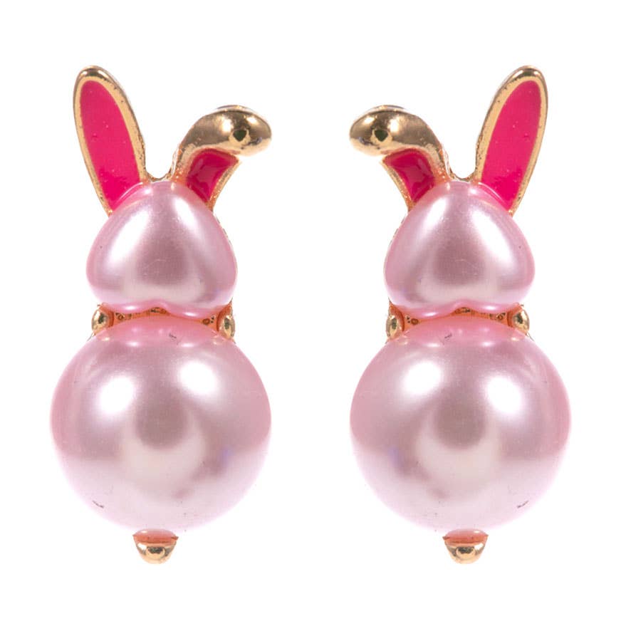 Cute bunny stud earrings with a playful animal silhouette and smooth pearl-inspired accents. A charming choice for Easter. Lightweight and easy to style, these earrings add a fun seasonal touch to everyday outfits.