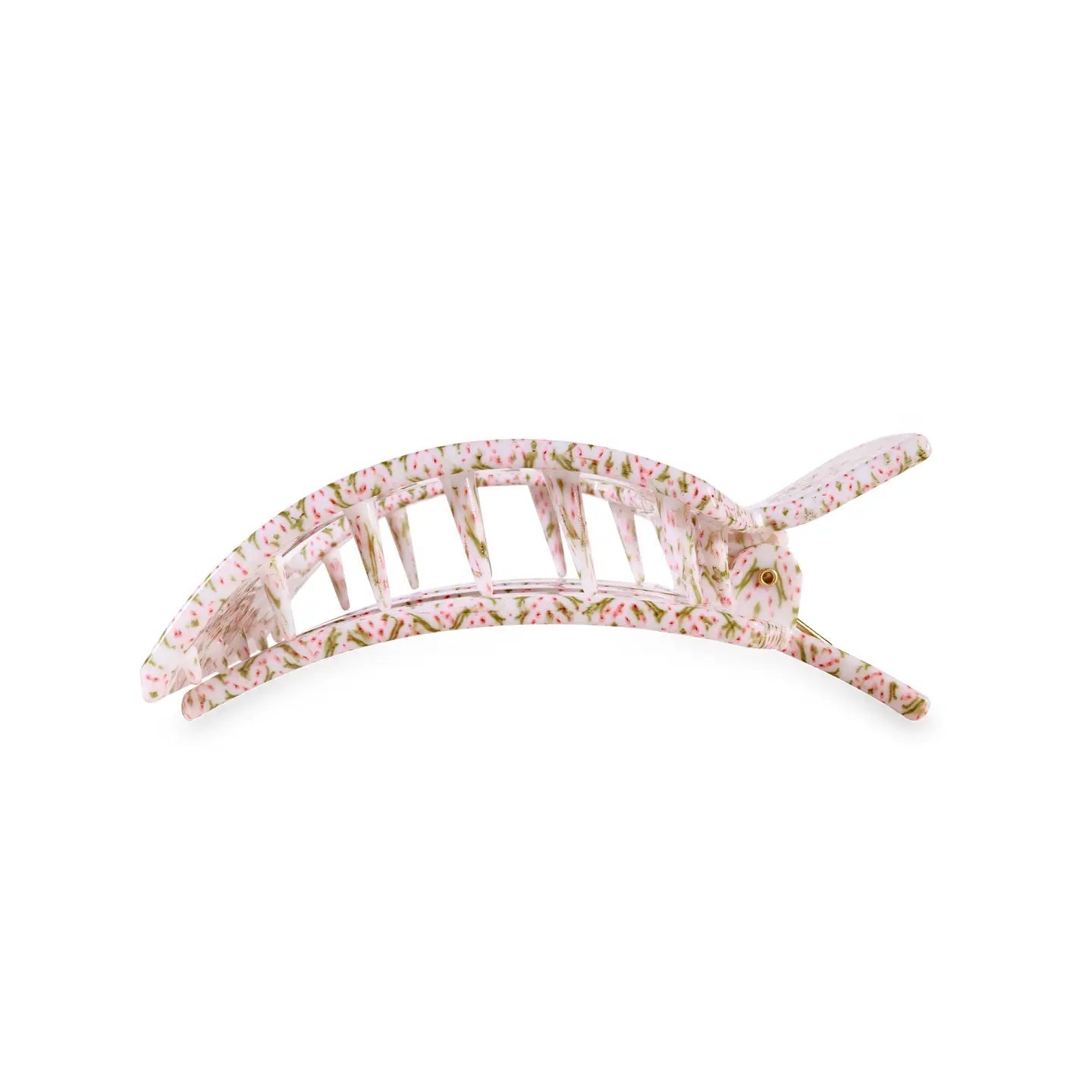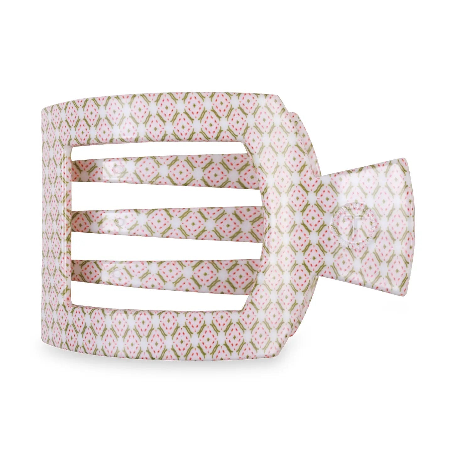 Unwind and relax with the new TELETIES Flat Square Hair Clip! Lay flat and relax with the Pine & Pearl Large Flat Square Hair Clip in Pink. Designed with our same innovative material that is nearly unbreakable, this clip is perfect for lying down, doing yoga or simply laying back without discomfort.