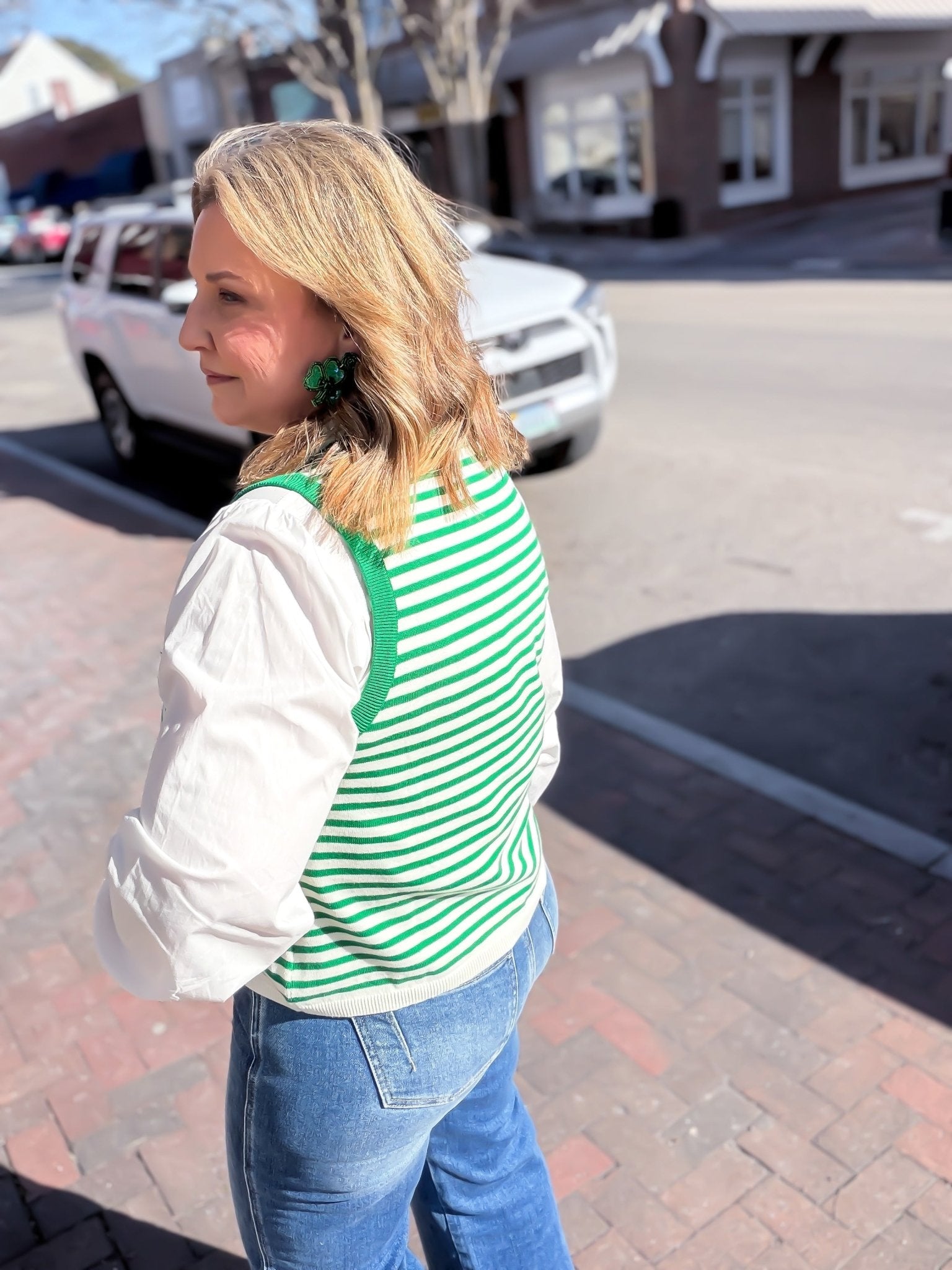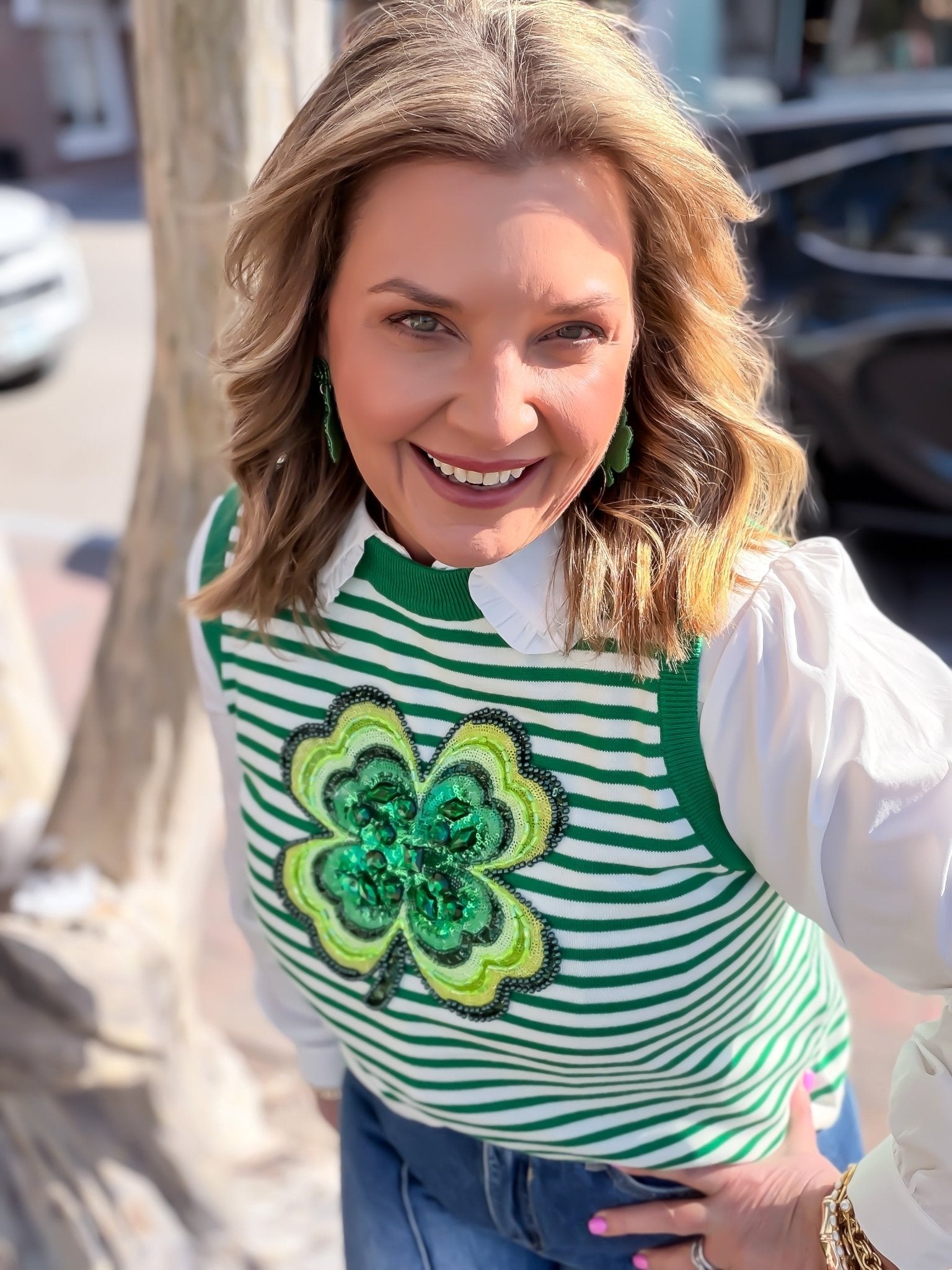 Embrace your lucky side with this vibrant Lucky Charm Knit Tank from Queen of Sparkles. Featuring cheerful green stripes and a charming shamrock design, it's the perfect piece to celebrate your playful spirit year-round. Crafted from soft, breathable knit fabric, this tank offers comfort and style whether you're channeling festive vibes or just spreading good fortune. A fun, feel-good essential that brings a smile to any casual wardrobe.