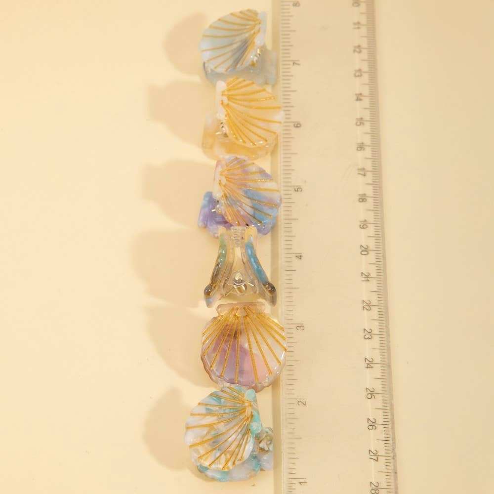 Channel your inner ocean goddess with our Mermaidcore Seashell Mini Claw Hair Clips. This enchanting 6-piece set features assorted iridescent shell designs with elegant gold-lined detailing. Perfectly sized for half-up styles or securing flyaways, these versatile clips add an instant touch of beachy whimsy and textured interest to any hairstyle. Whether you're heading to the coast or just want to carry a piece of the sea with you, these durable clips are the ultimate summer accessory.