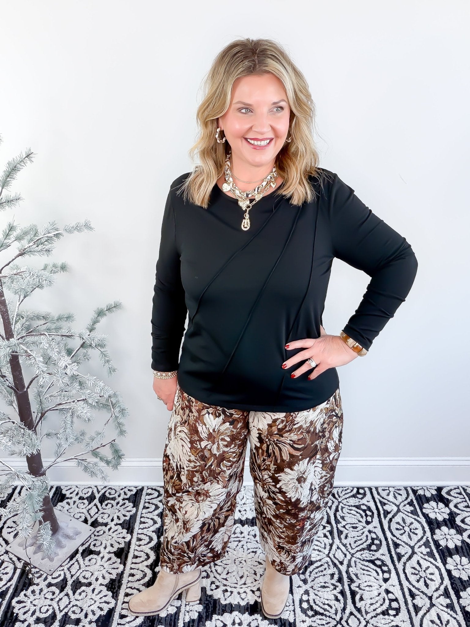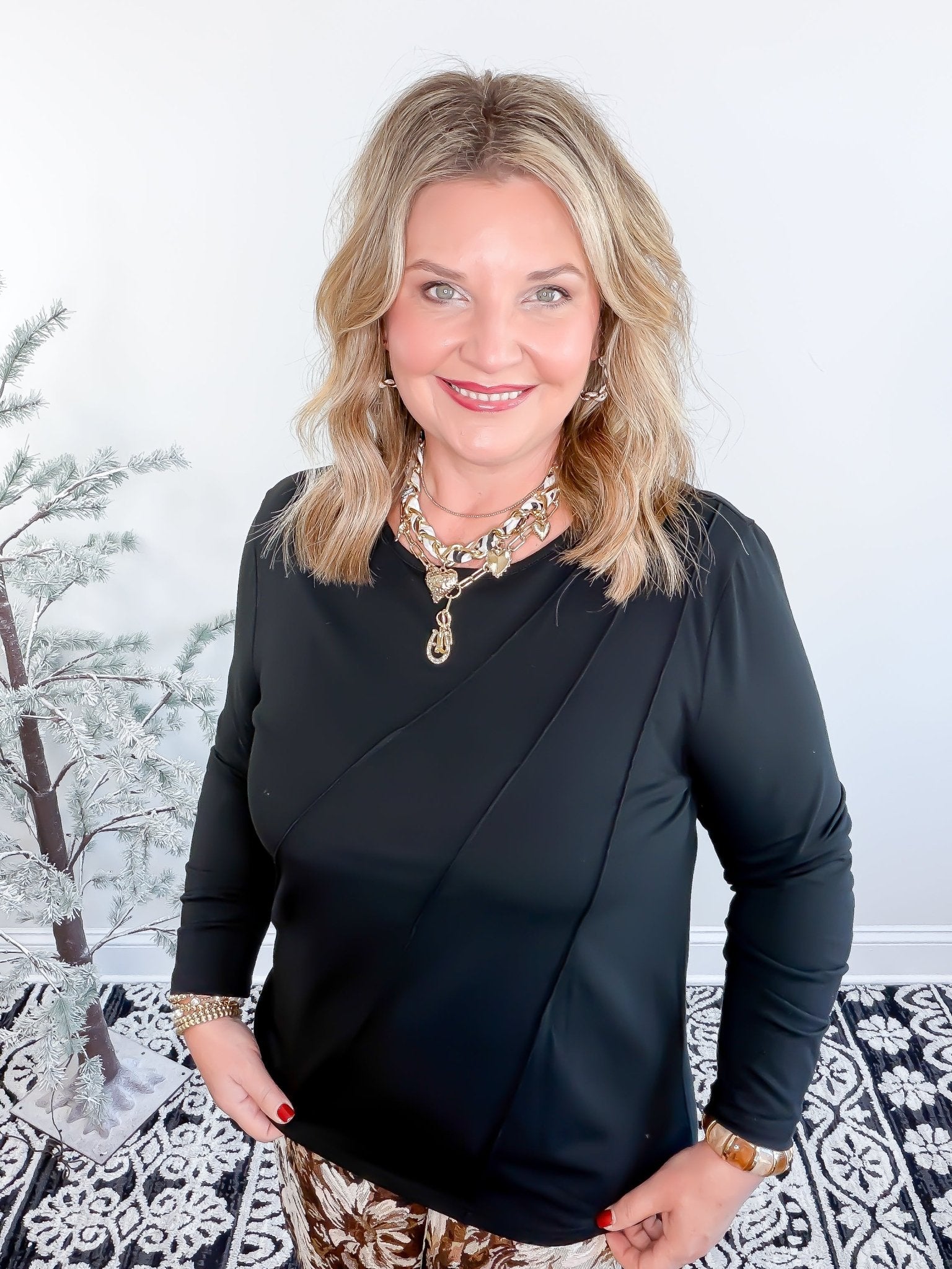 Add a twist to your wardrobe with the Structured in Style Top! Featuring an eye-catching asymmetric seam detail, this long sleeve solid top combines sleek structure with a playful edge. Perfect for mixing and matching, it elevates your everyday look with a unique, modern flair. Comfortable yet chic, it's a must-have for those who love to stand out effortlessly.