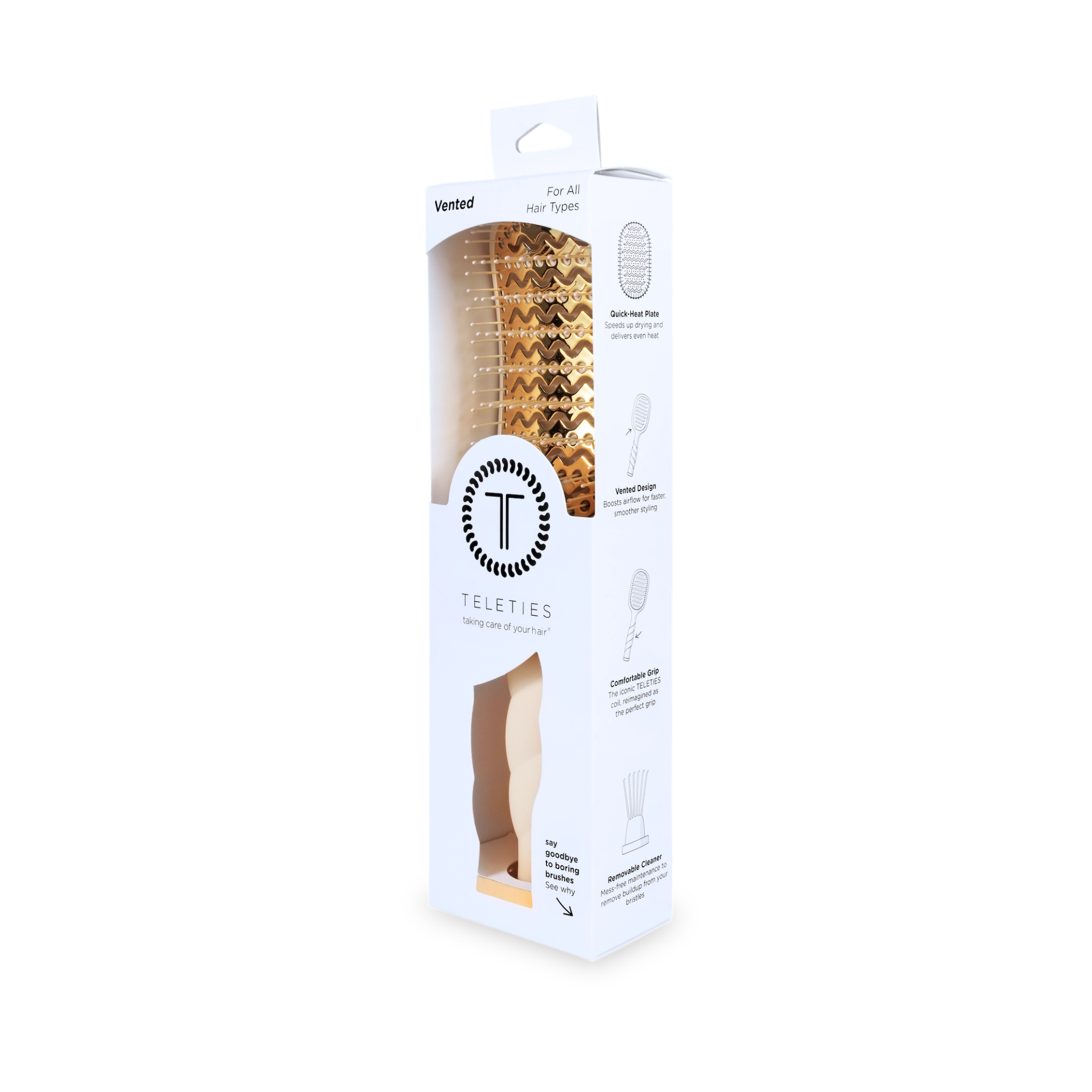 The Vented Brush is your new secret to faster, smoother blowouts. Pairing a Quick-Heat Aluminum Plate that heats up in seconds and distributes heat evenly with a vented design to enhance air flow, this vent brush works perfectly with your blow dryer to cut down on styling time without cutting corners on results.