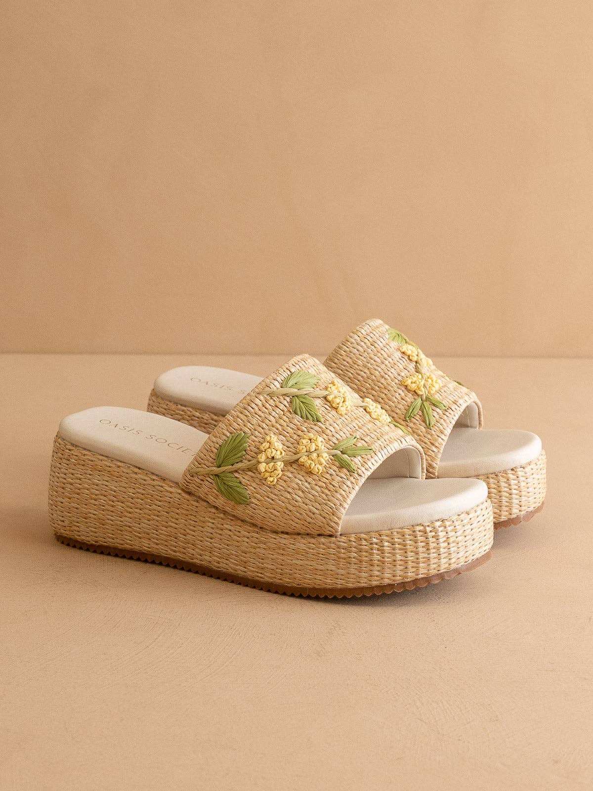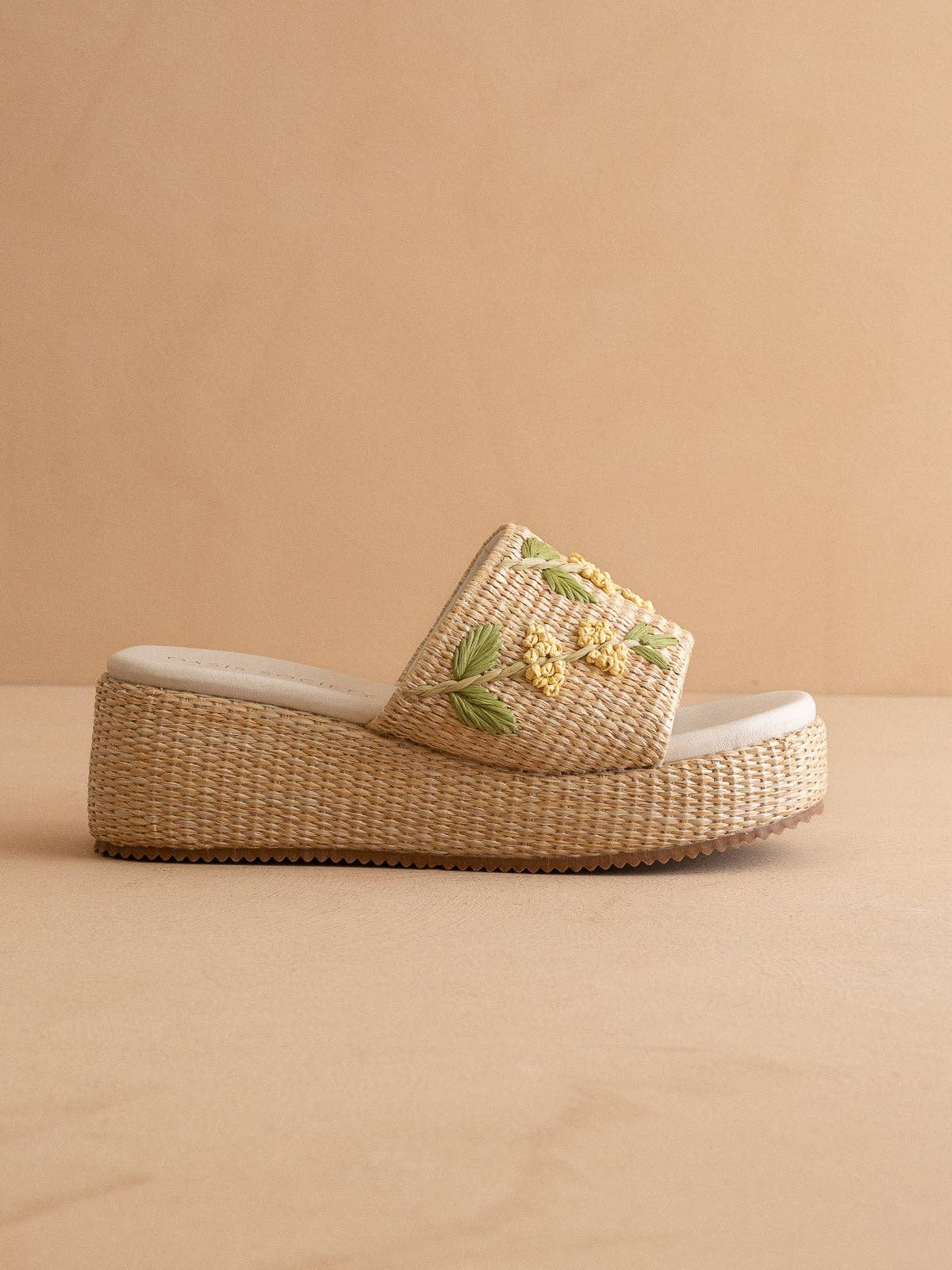 - Artisanal Floral Detailing: Hand-crafted style meets everyday luxury with delicate floral embroidery on a natural raffia upper.